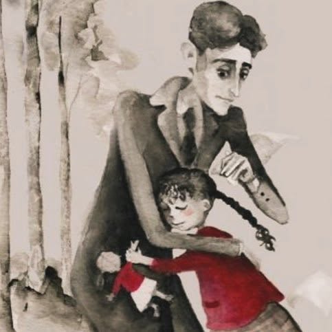 1923 年秋天,卡夫卡和女友,在柏林住家附近的公園散步,遇到一個小女孩哭的很傷心,就問她怎麼了。